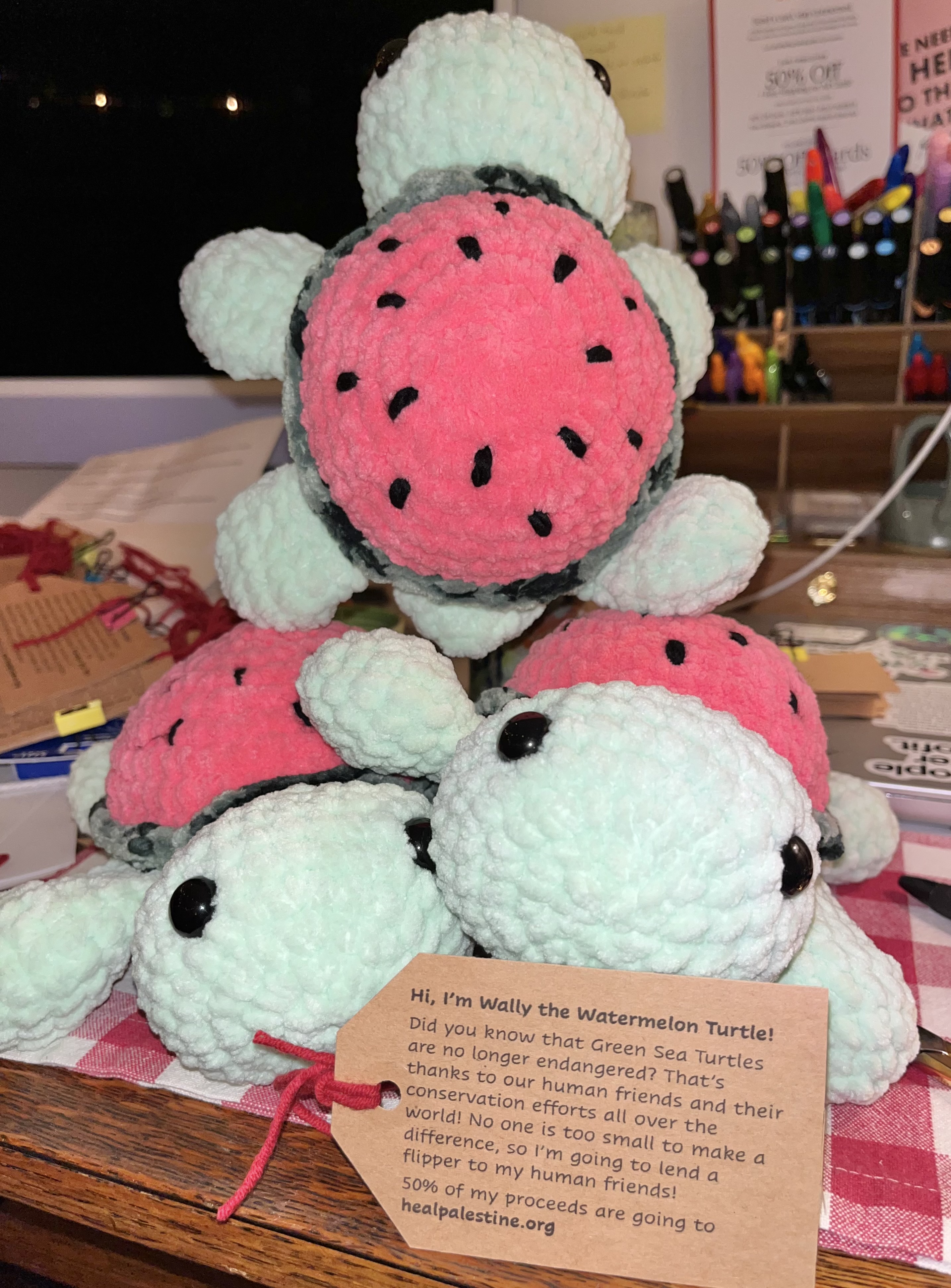 At the 2025 Fall Festival for the Franciscan Monastery Garden Guild in Washington. D.C. I sold my watermelon turtles for the first time and they were a fan favorite. 50% of their proceeds went to Heal Palestine, another organization I am in no way affiliated with, but wanted to do my part to support.